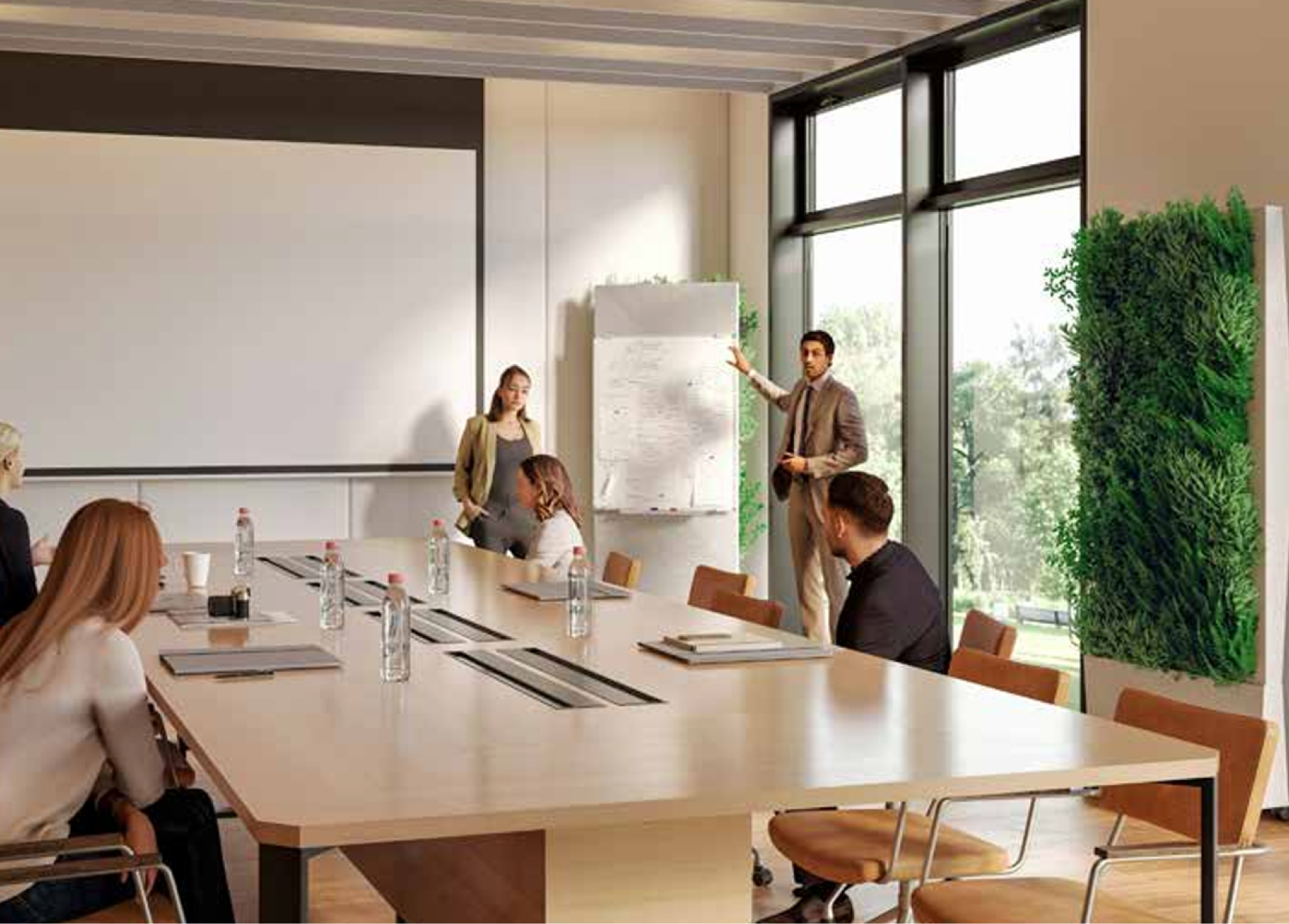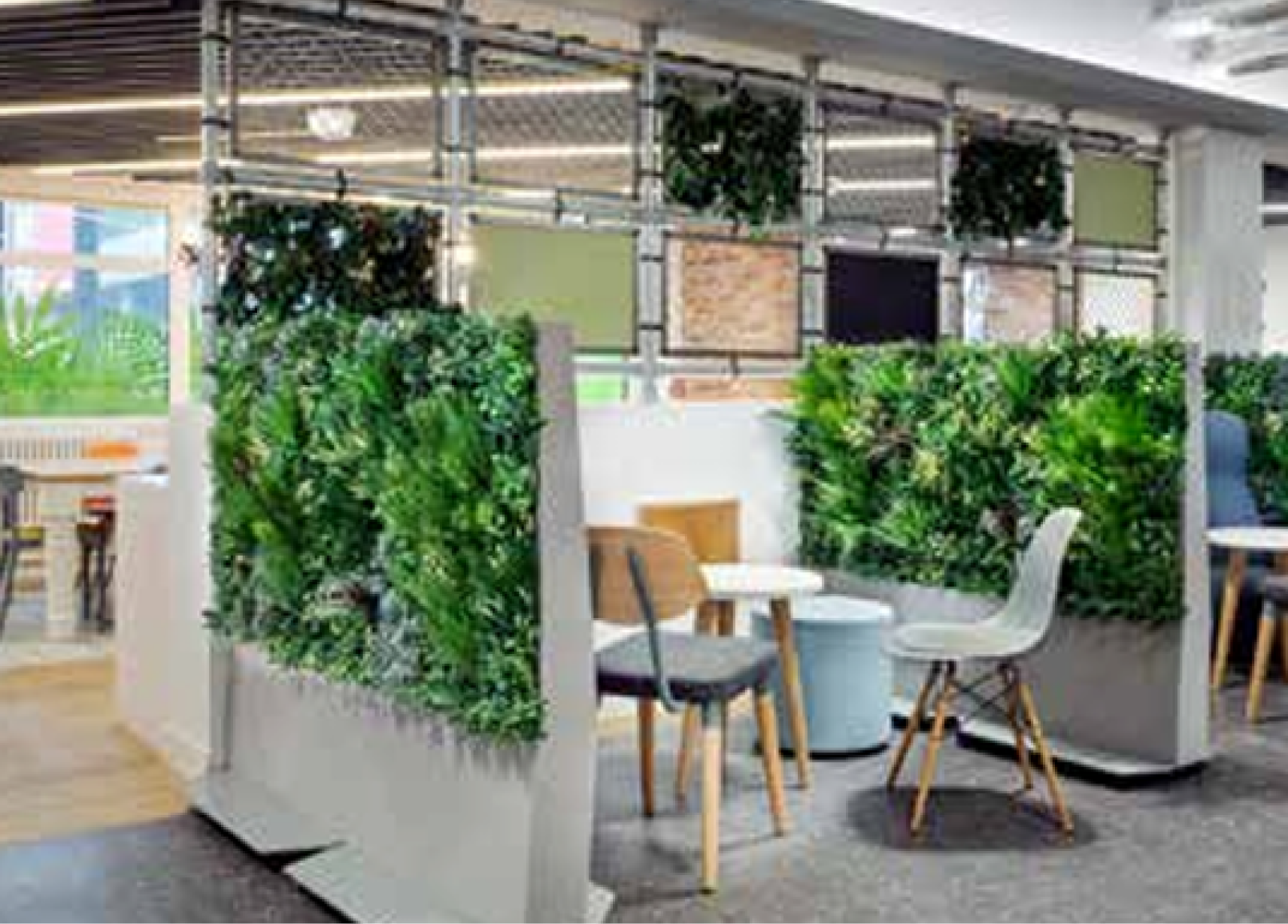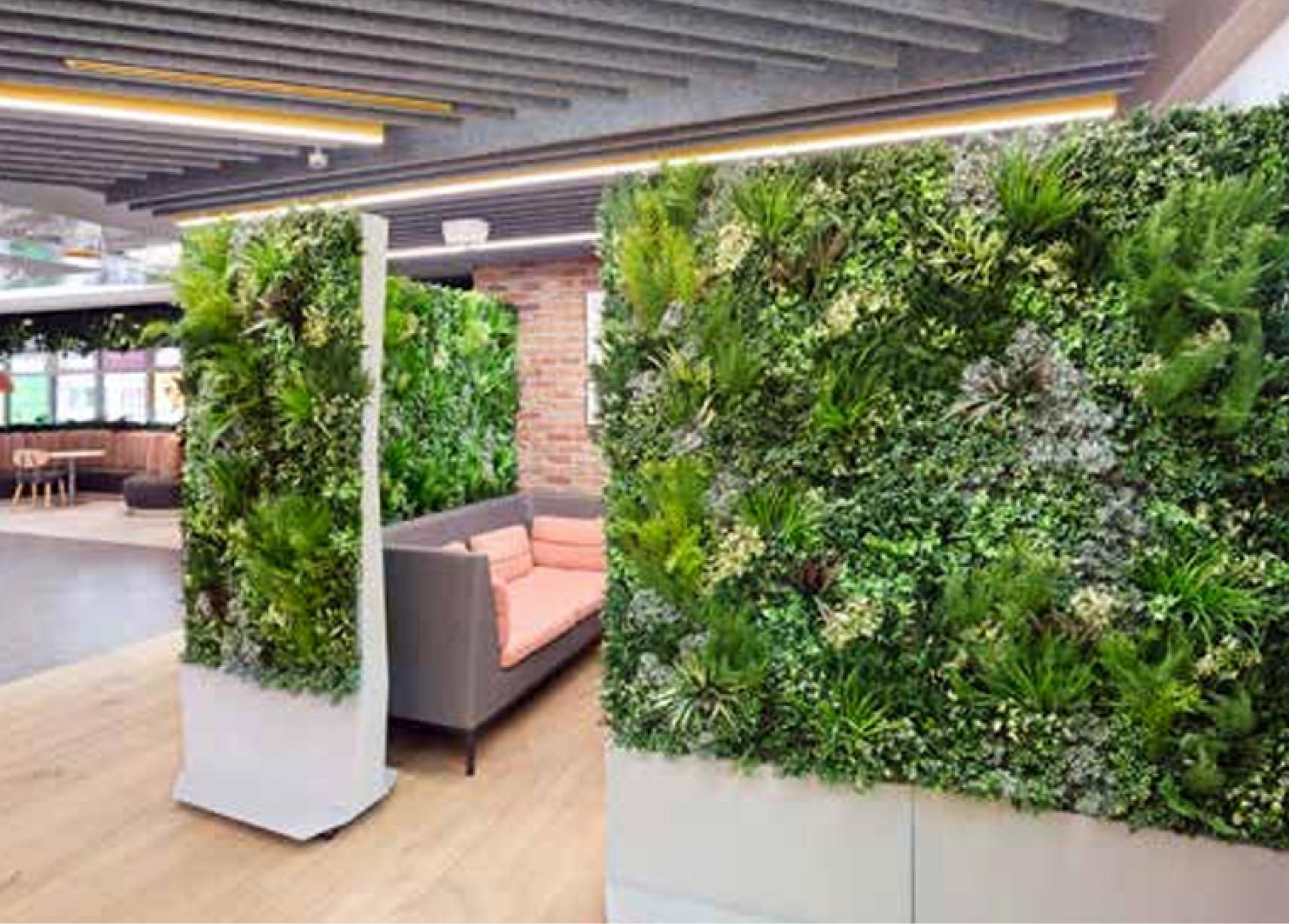 Modular green wall partitions. The Foliascreen® features our Artificial Green Wall panels and high-quality upholstered fabric.