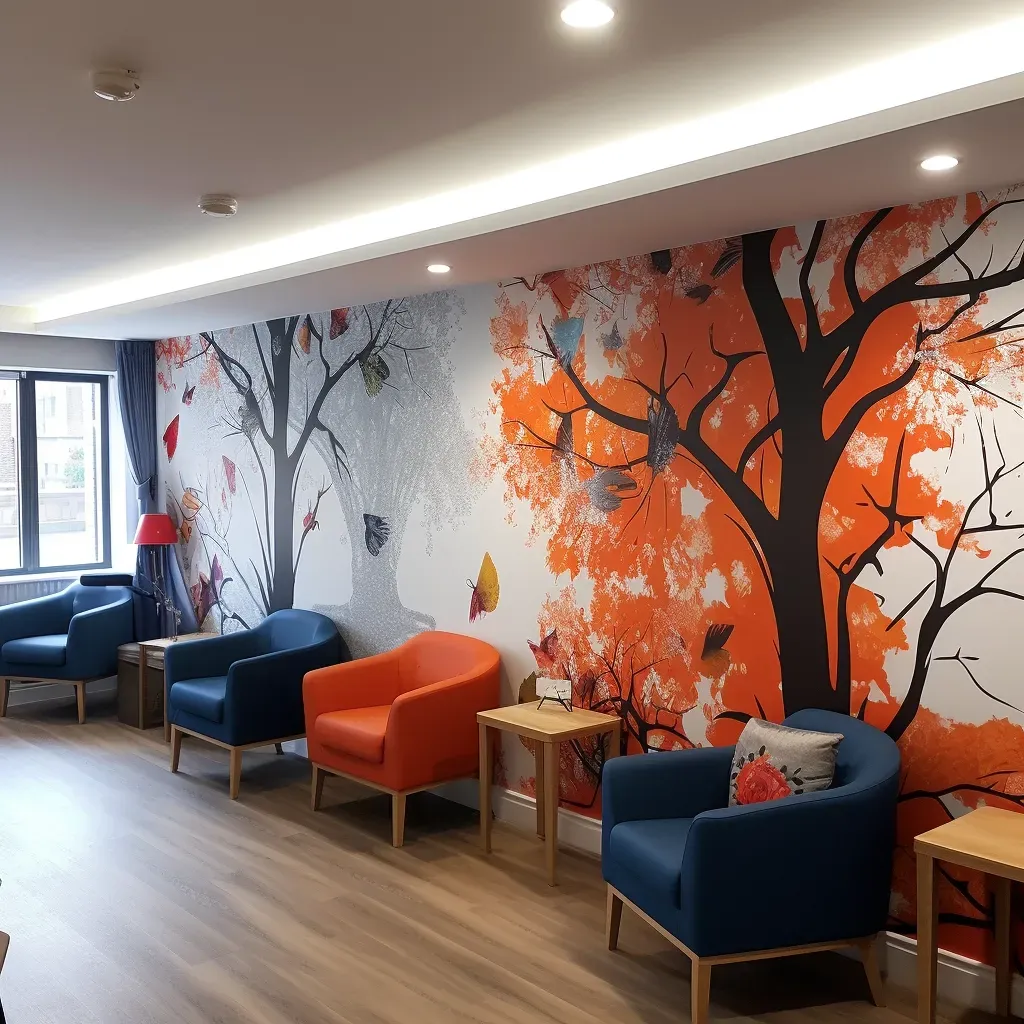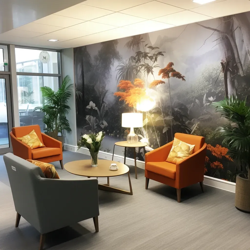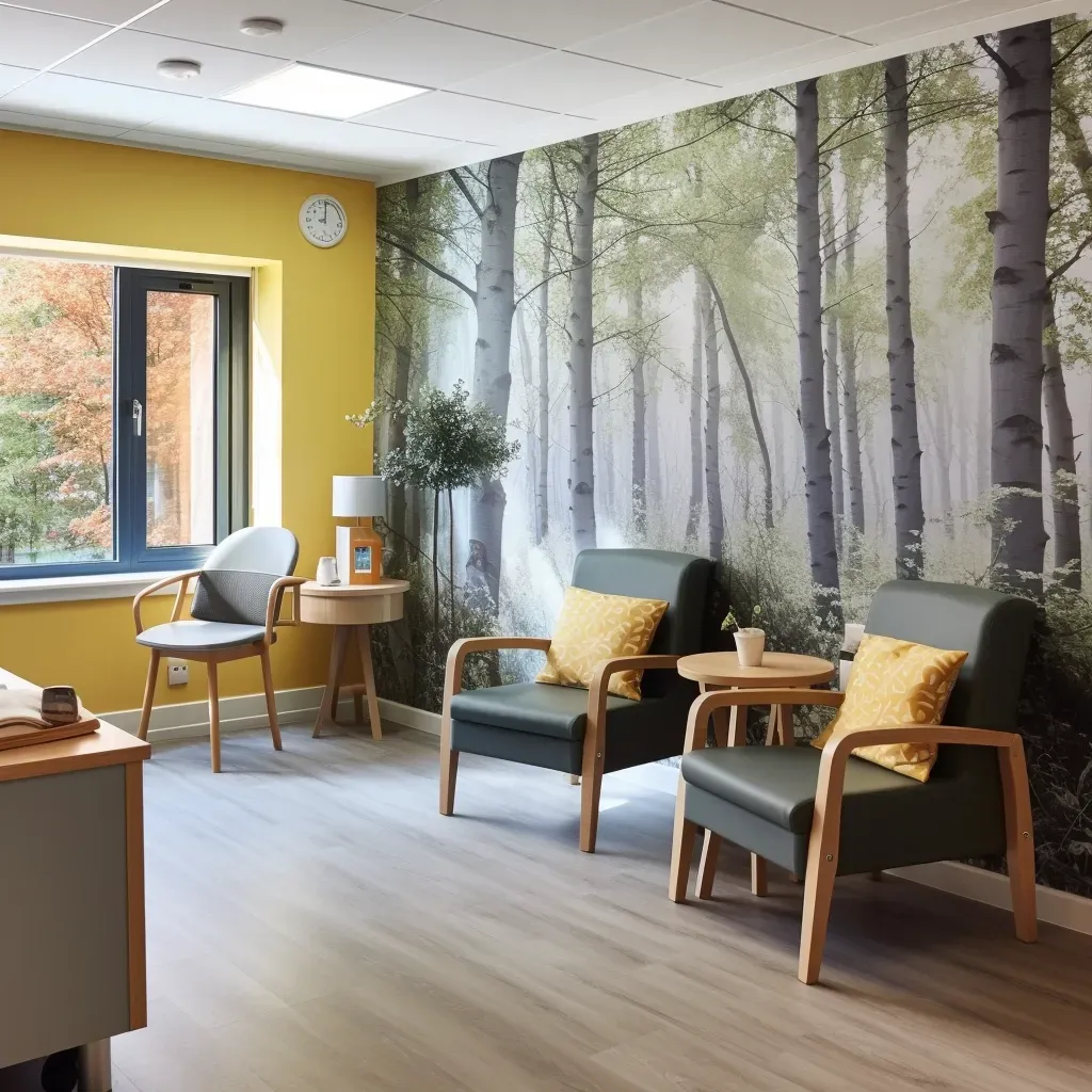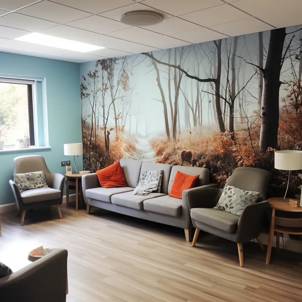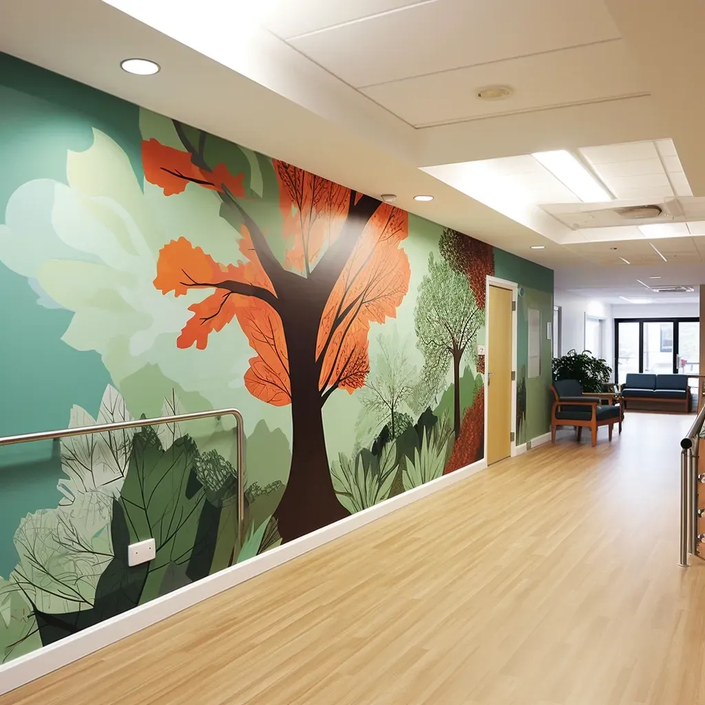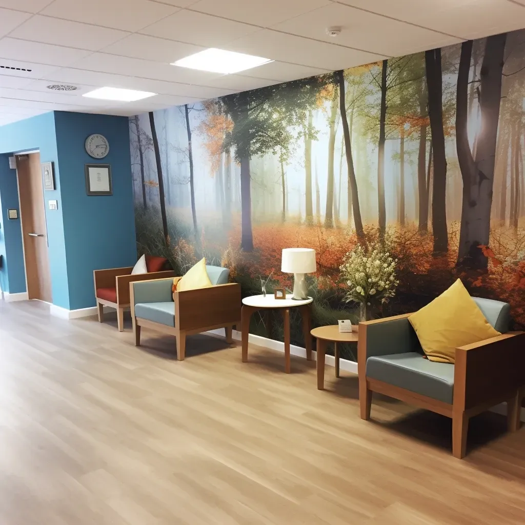 Use wall graphics to create a unique stunning look for your Care Home, Hospital.