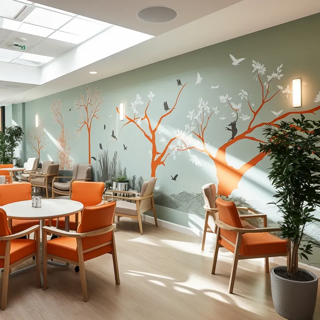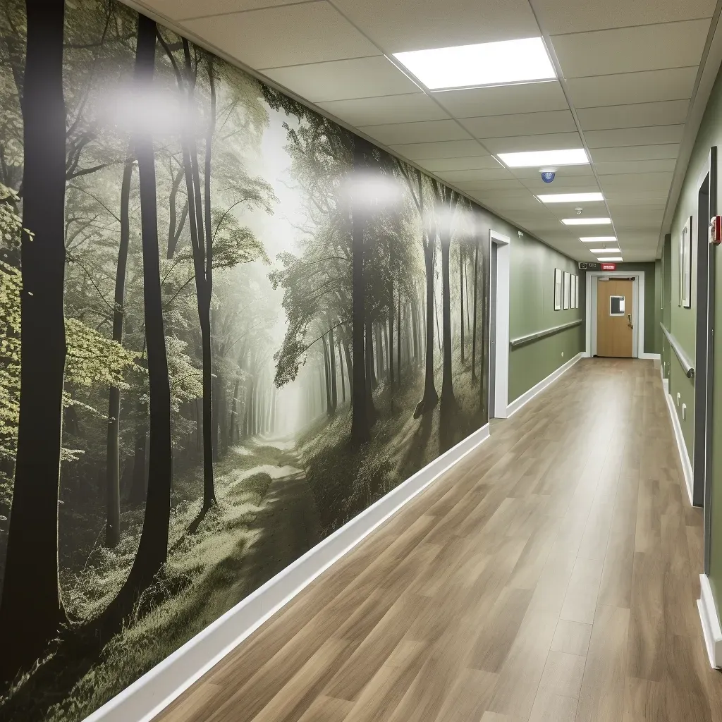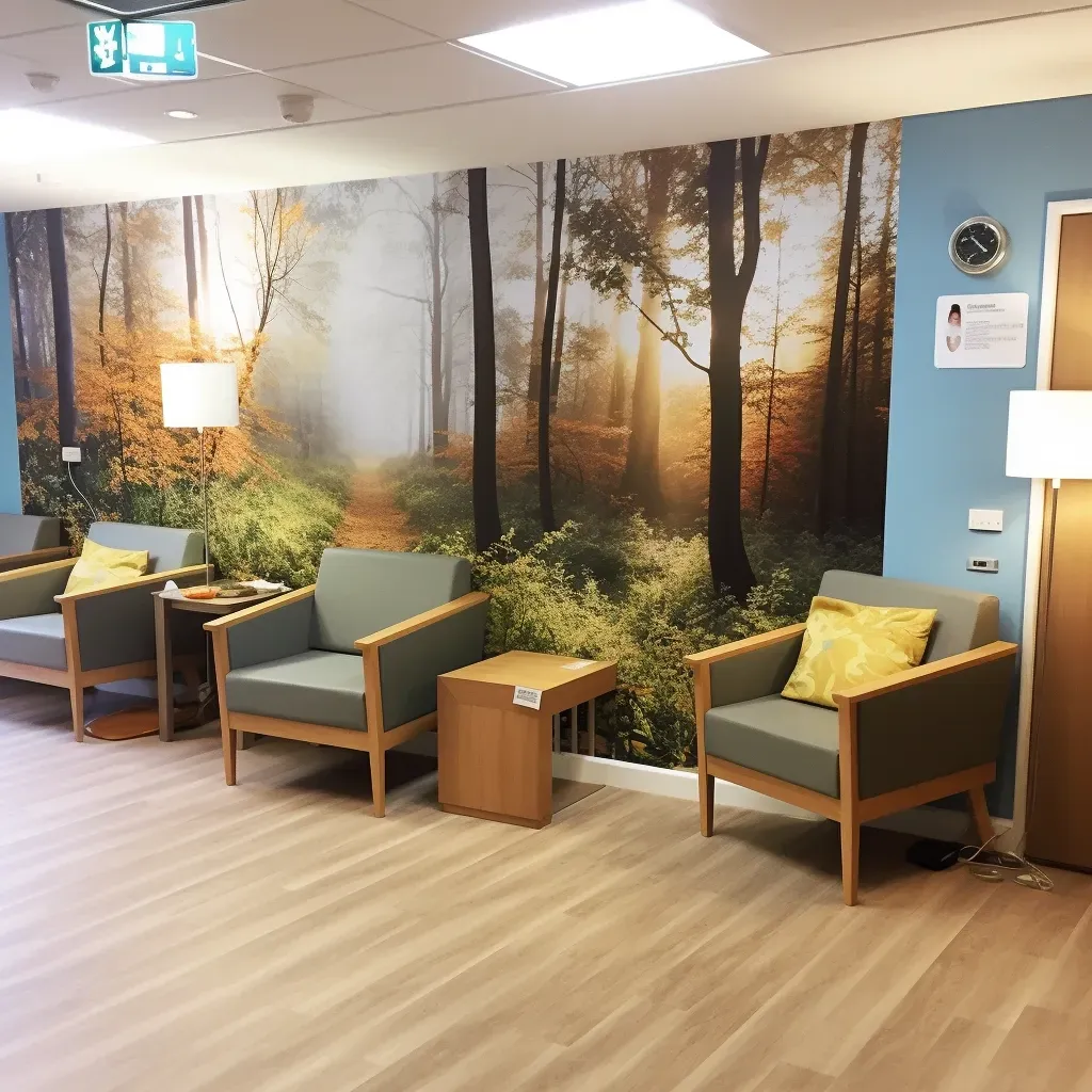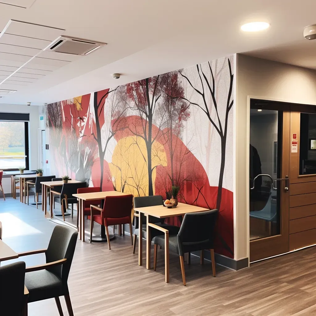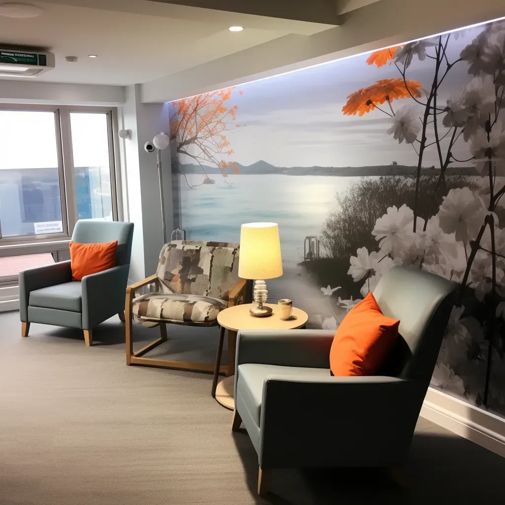 Use wall graphics to create a unique stunning look for your Care Home, Hospital.
