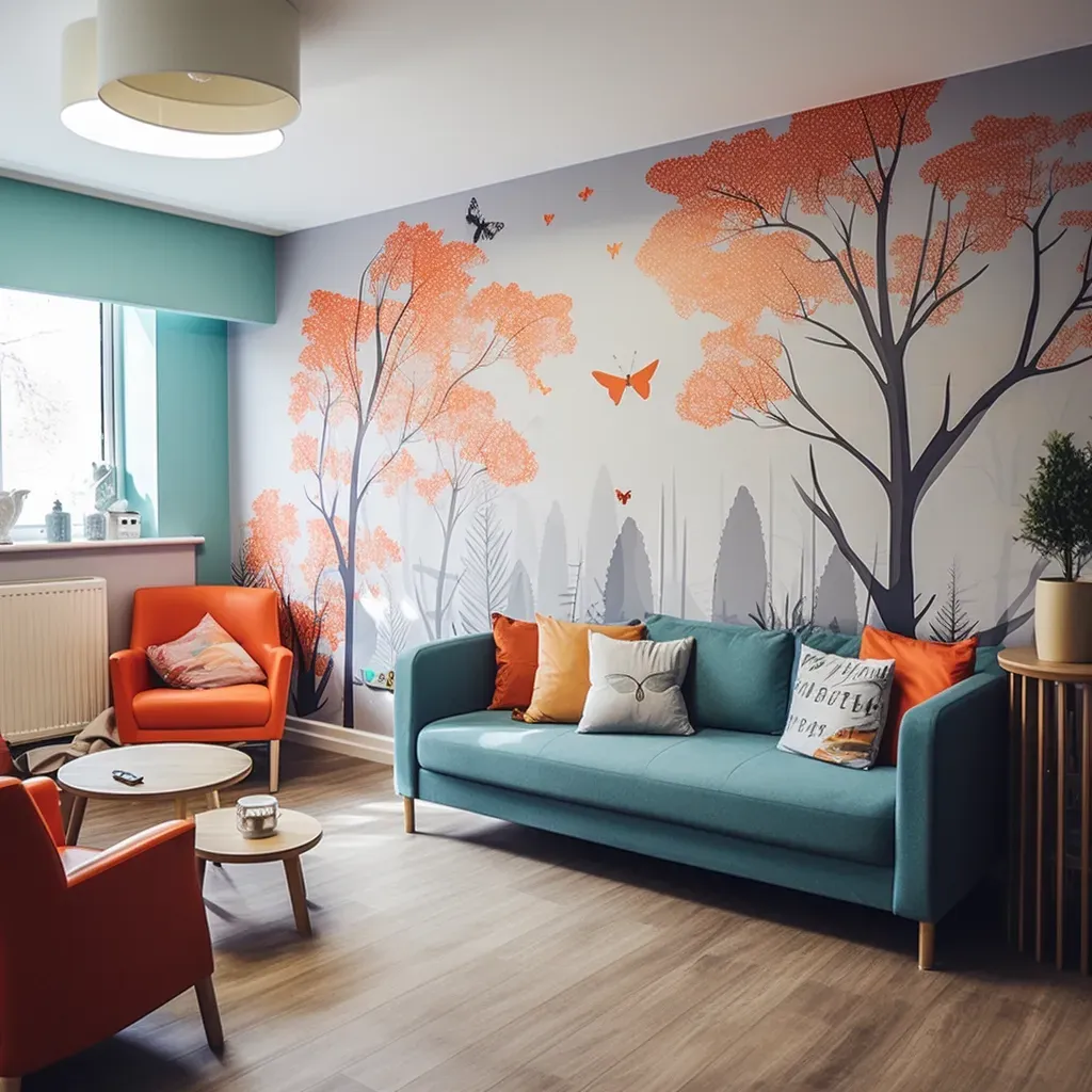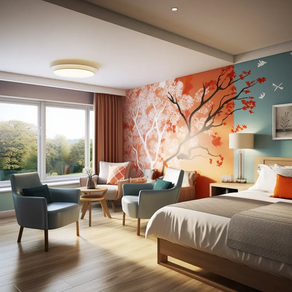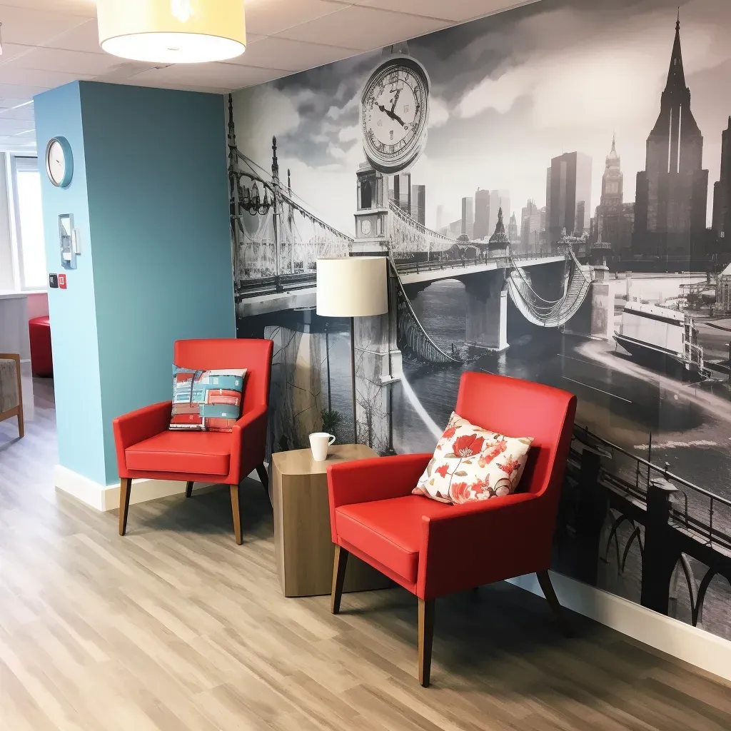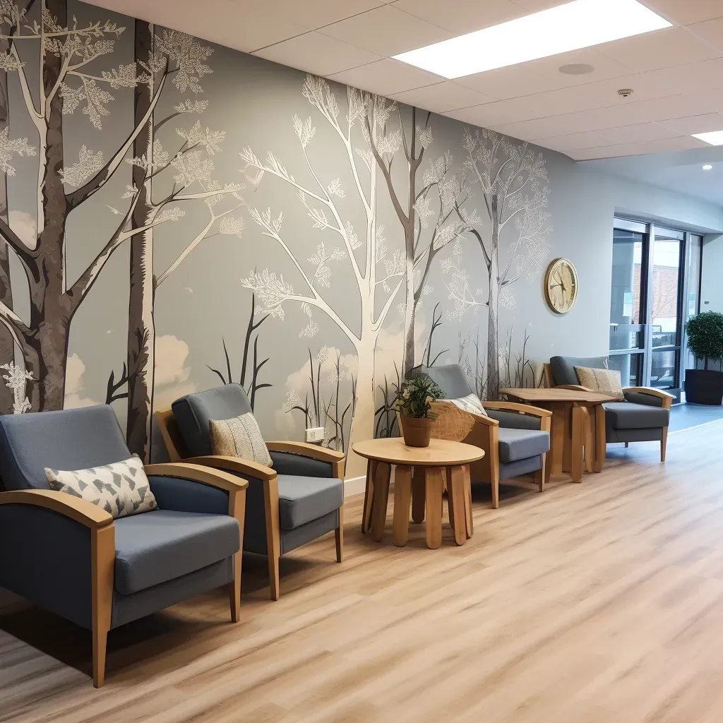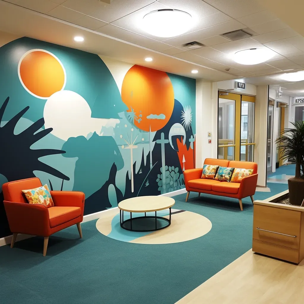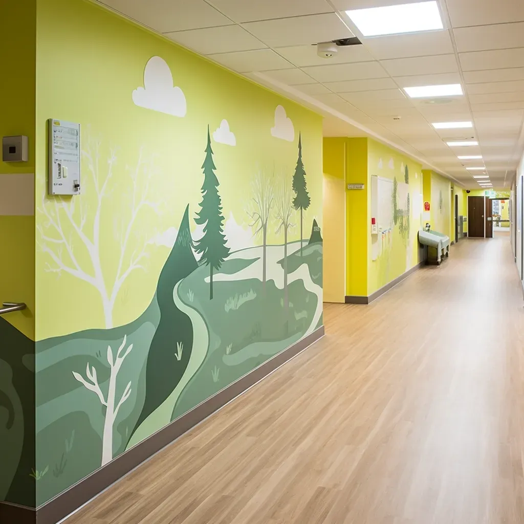 Use wall graphics to create a unique stunning look for your Care Home, Hospital.