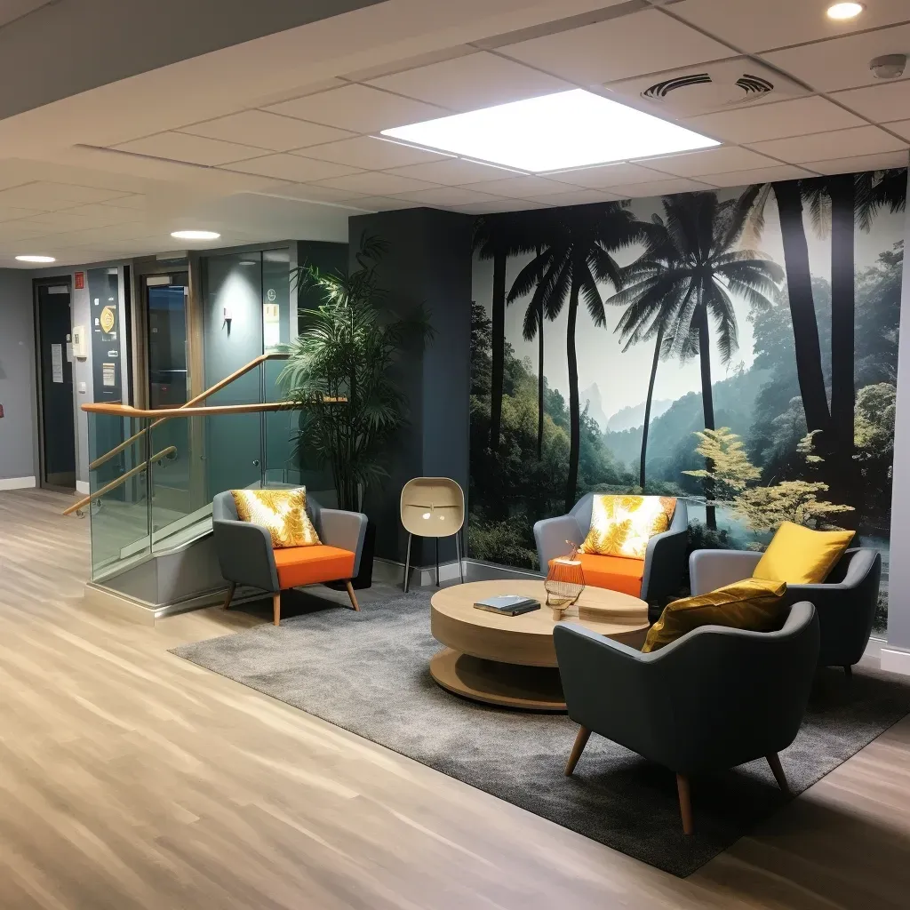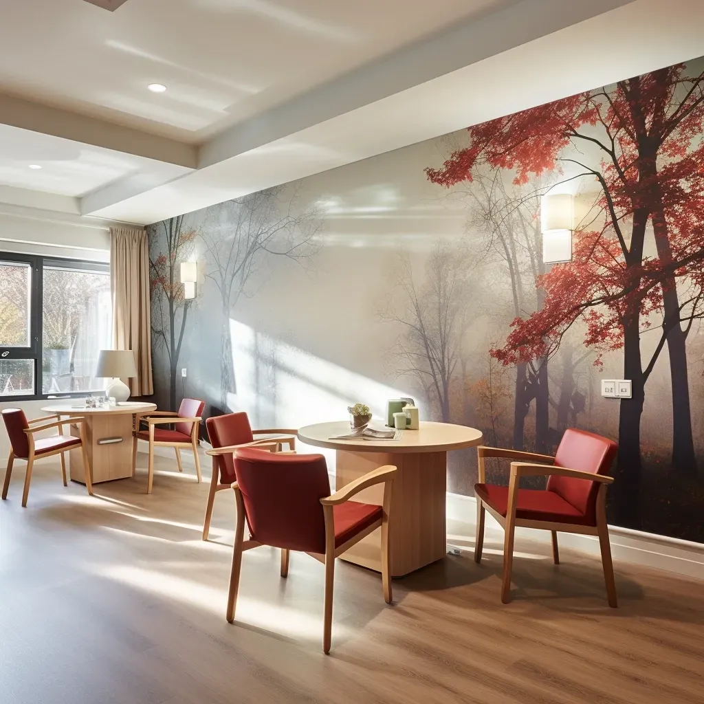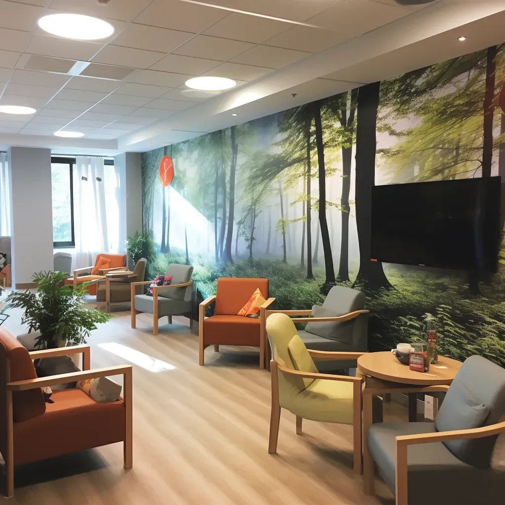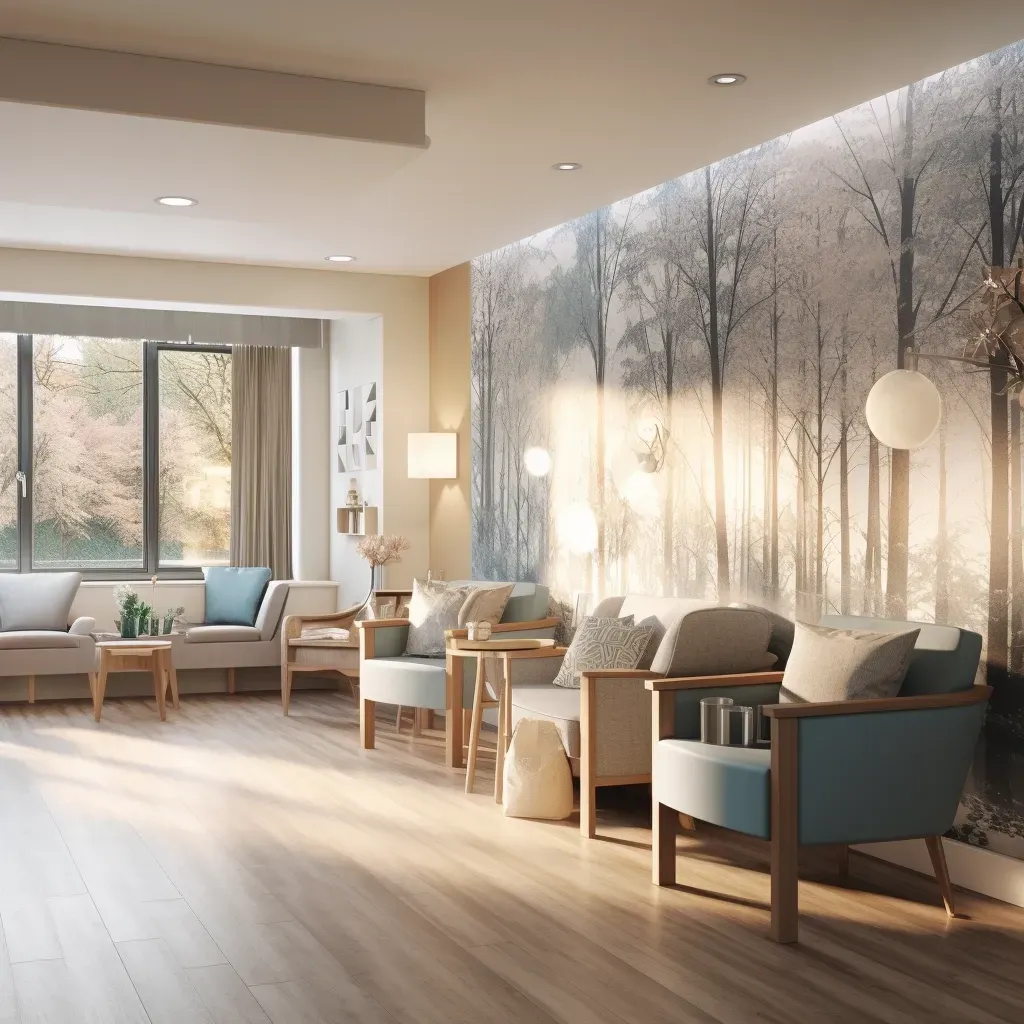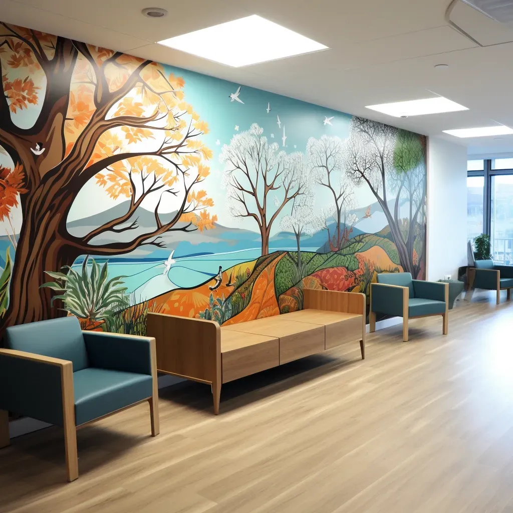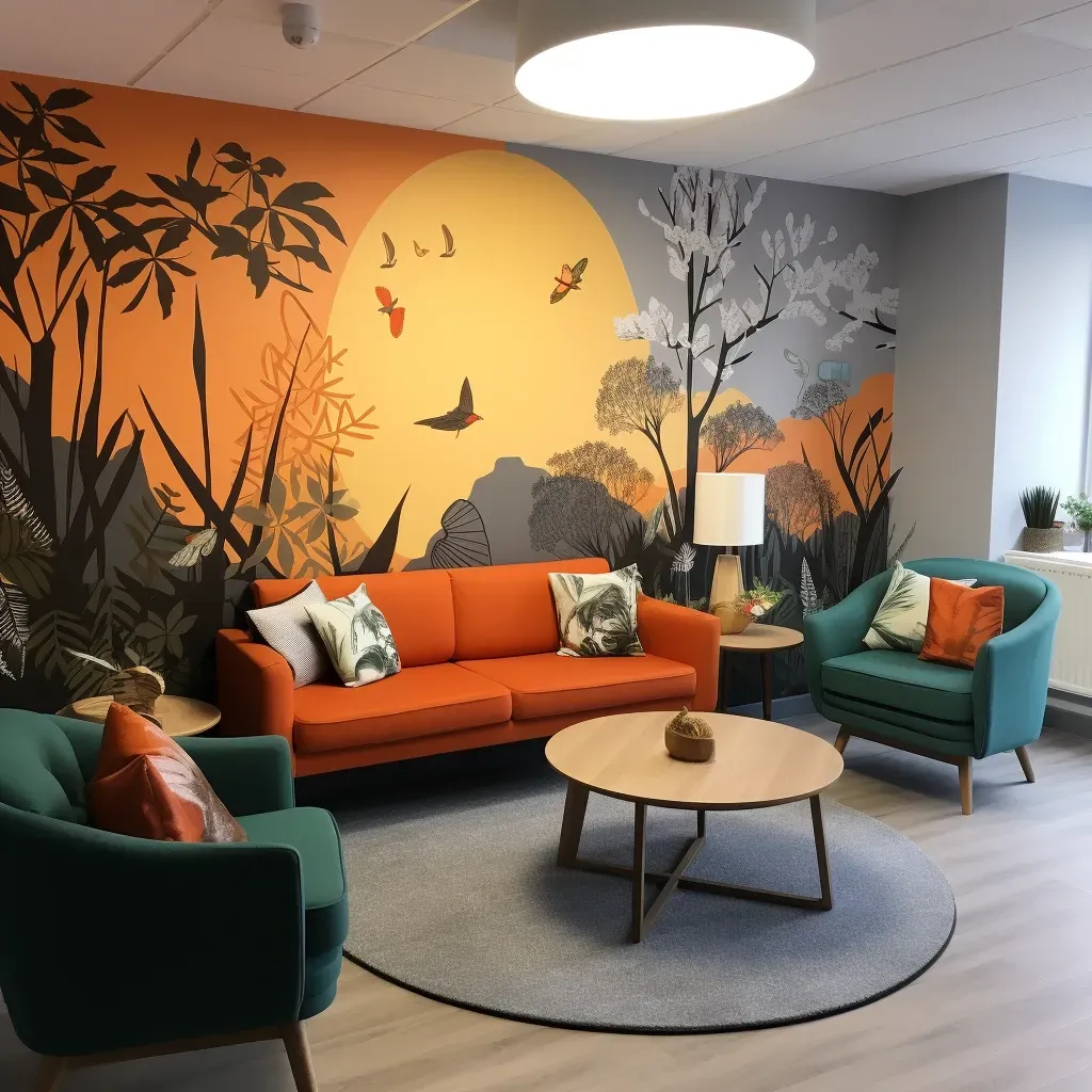 Use wall graphics to create a unique stunning look for your Care Home, Hospital.